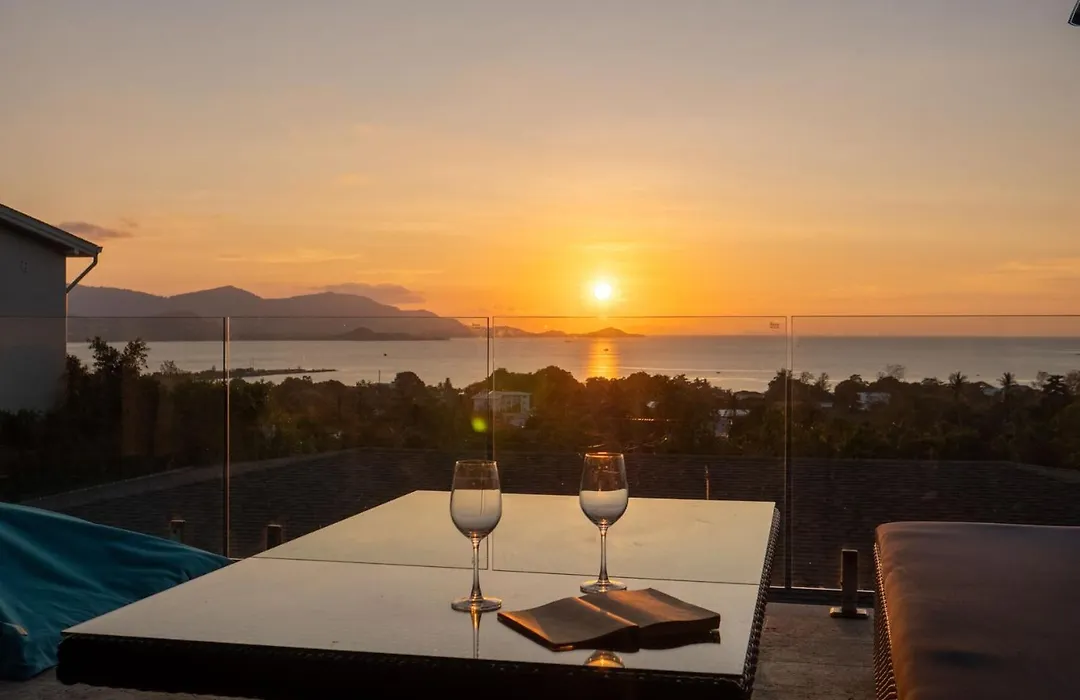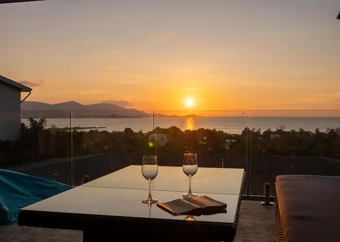 Situada a unos 7 km del Lago Chaweng, la Luxe 4Br Sunset Seaview Villa Private Infinity Koh Samui invita a los huéspedes a relajarse en una terraza.